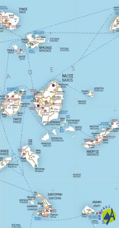 Updated road network with all new highways and main road connections. All airports, ferry links, railways and organized marinas. All major sites, archeological sites, monasteries, castles, caves, ski resorts, thermal baths, national parks and UNESCO World Heritage Sites. Also appear on a map for the first time long-distance trails, such as European and National paths that cross Greece, but also long routes such as the Menalo trail, the Epirus trail etc.