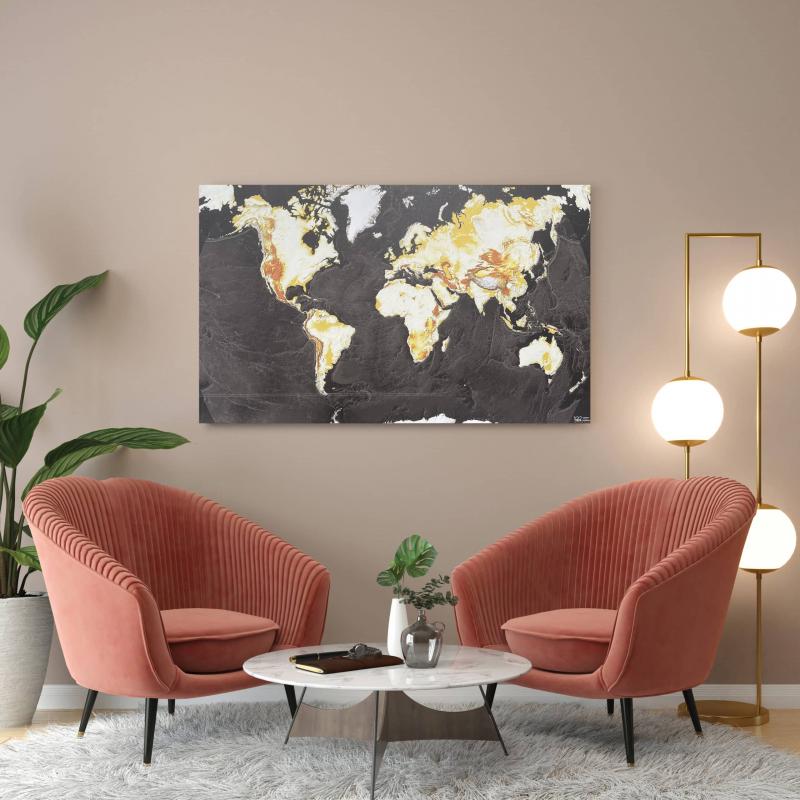 Nel nostro GOLDEN GAIA l’anima degli oceani si confronta con l’oro delle terre emerse. Il colore più prossimo alla luce, alla rinascita, alla speranza, si associa al dinamismo che caratterizza le nostre società sparpagliate nei vari territori in mille riflessi di luce.