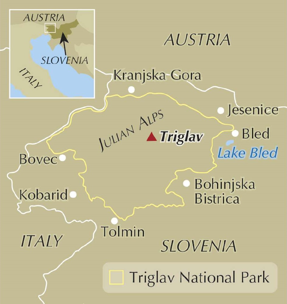 The Julian Alps - Triglav, Jalovec, Mangart, the Triglav lakes, the lower Bohinj mountains, Špik, Krn; Lake Bled, Lake Bohinj and their surroundings; Vintgar gorge; World War I mountain battlefields of the Soča front and the Kobarid Museum; the Vršič pass; the emerald-green Soča River; limestone formations, alpine flowers, wildlife.