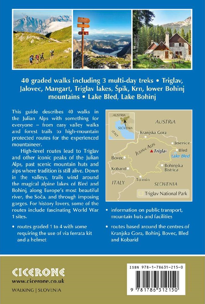 The routes are described from five bases, all of which have tourist infrastructure: Kranjska Gora, Bohinj, Bovec, Bled and Kobarid.